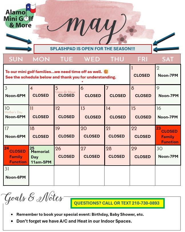 At Alamo Mini Golf our mission is to provide people with simple, fun family entertainment at an affordable price.